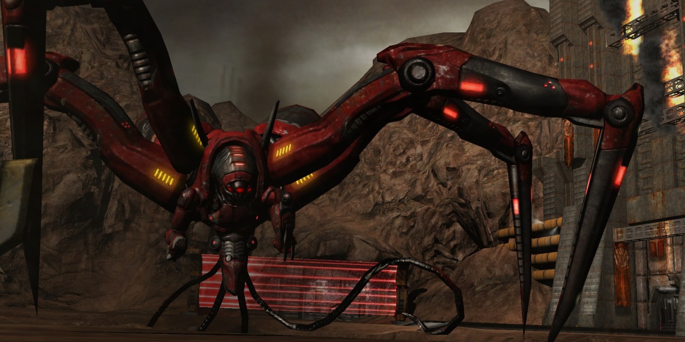 The biggest comparison of course exists between Doom 3 and Quake 4. The latter uses the engine of the former, came out a year later, and seems to have taken some visual inspiration from it too. There is a similar biomechanical theme present in the enemy design, and the mini-bosses Sabaoth and Voss felt very similar. Both of them are former allies that have been transformed into hideous cybernetic monstrosities. On the whole I found the Strogg more disturbing, probably because they seem intelligent and organized, whereas the forces of Hell seem primal and chaotic. In Quake 4 you get a glimpse into how the humans are abducted and experimented upon. The business of Stroggification is methodical and systematic. It takes time and resources to accomplish. They go through a lot of effort to torture people- and it’s that effort that disturbs you, as you walk through labs with human torsos fused into computer interfaces, the vast industry that powers this sick desire.