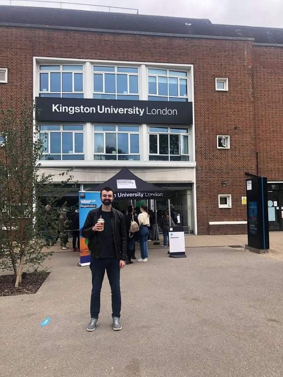 Unfortunately, both of my roommates were unwell that week (just regular flu, not Rona), so he was able to meet them from a safe distance but not spend any real time getting to know them. After dropping his things in my room, as well a carrot cake our mom had sent with him, we set off toward campus. I showed him the cafeteria where the baristas already know my habits so well they begin making my order (medium iced cappuccino) as soon as I come through the door, as well as the Town House- which had just that month won the 2021 Stirling Prize (the best new building this year). Frank was under orders from our parents to get a picture of me, which you can see below. I actually don’t hate it, simply because it’s a good time capsule. By which I mean, this is about as typical a representation of me from my time at KU as you can get- I always wear this leather jacket I bought in the Wisconsin Dells circa 2015 and I always get the same iced coffee from the cafeteria. The only thing it’s missing is my trusty backpack.
