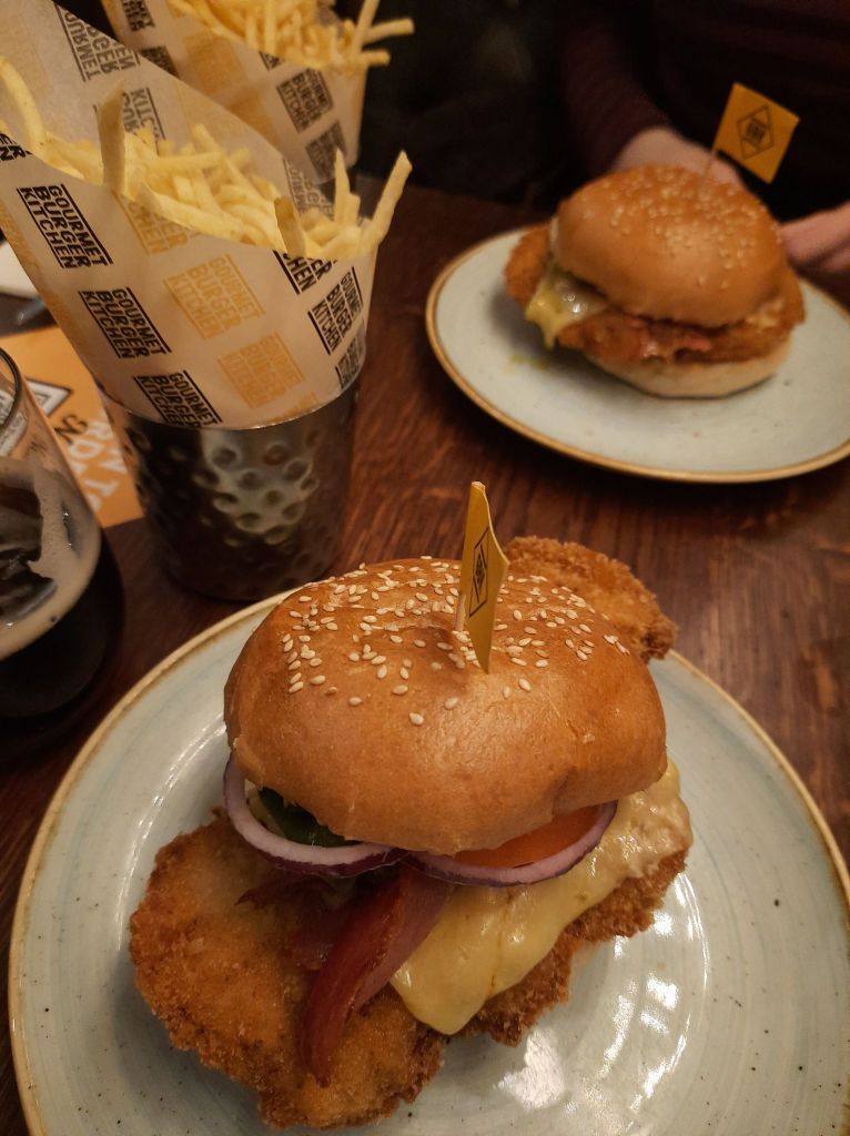 Both of us ordered the same thing: a pesto fried chicken burger with fries. I got a rum and coke and Emily opted for a Prosecco. By the time the food came it was half past, so we had to eat quick- something that’s not easy for me. Everyone that knows me knows that I’m a notoriously slow eater. It’s probably a mental thing- a longstanding fear of choking, maybe. I take cautious, birdlike bites and masticate until the food becomes a paste on my tongue. I have the same thing with drinking- I can’t chug anything. And every time I take a pill, no matter the size, I often have to crunch it first. It’s all part of the same problem, and it’s one I’ve had since I was about fifteen or so.